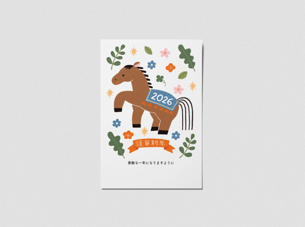 CLIENT WORKS, zakka フタバ「年賀状 2026」 shionkawabe 2025-11-27 2026年の年賀状を制作いたしました! 来年の干支である馬がメインモチーフで2種類つくりました。 ハッピーな新年を迎えられますようにと願いを込めて制作しました 全国のLOFTにて販売中です!よろしくお願い致します! Related posts技術評論社「かんたん年賀状素材集」アートプリントジャパン 年賀状2023年賀状2016~