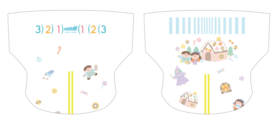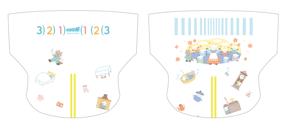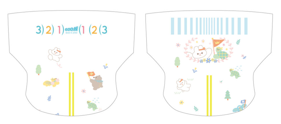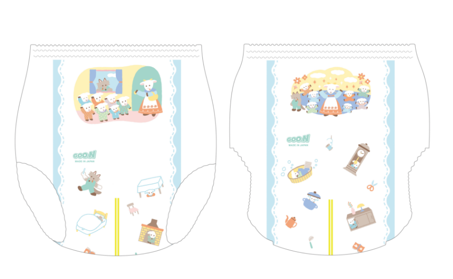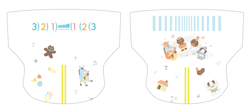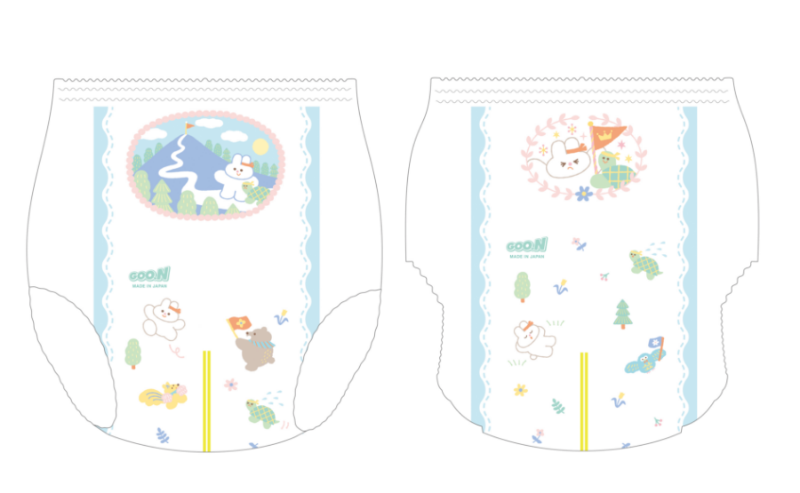 なんとこの度リニューアル販売される「グーン モレ0(ゼロ)へ」のオムツのイラストを全6種類、全て担当させていただきました✨