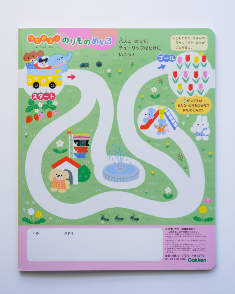 book, CLIENT WORKS Gakken「いっしょ 2026.04~連載中」 shionkawabe 2026-04-10 2026年4月号から裏表紙の「つながる!のりものめいろ」コーナーを担当いたします! くま、ハチワレ猫、ぞうの3匹が毎号違う乗り物に乗ってたのしく迷路を盛り上げます。 1年間、どうぞよろしくお願いいたします。 2026.04 Related posts世界文化ワンダーグループ「ワンダーえほん」くもん出版「かいたりけしたりドリル 3・4・5さい」薬事日報「暮らしにいかす生活薬学」Puga Parlor「クリスマス展」幻冬舎「あたまがよくなる! 天才きおくカードゲーム」文響社 「うんこドリル ぶんしょう読解 6さい」ごめんねフラワー
